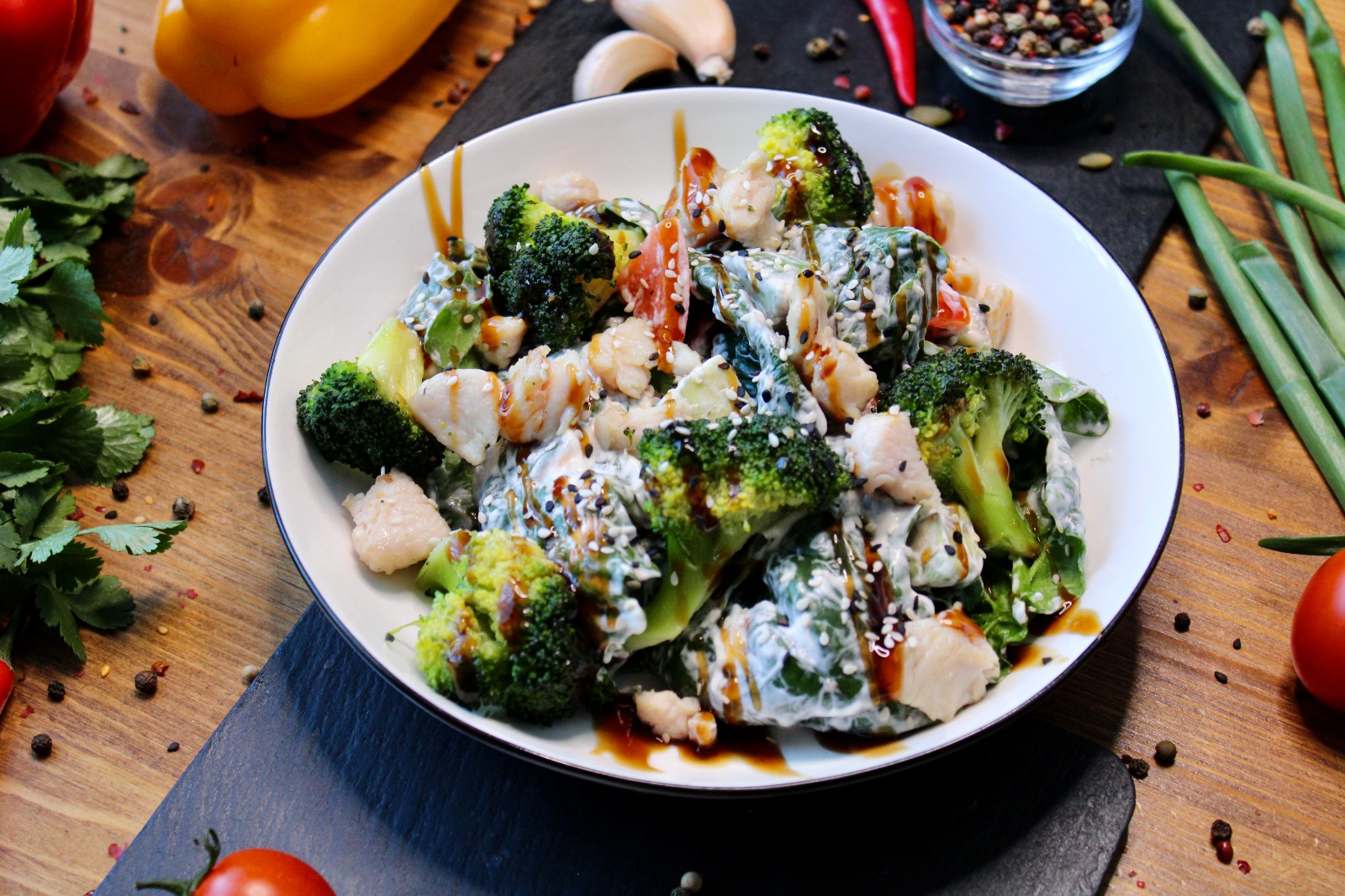 Теплый с куриной грудкойи авокадо